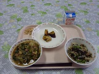 今日の献立は,にら卵スープです。にらは疲れをとってくれたり,体の粘膜を保護してくれたり,胃液の分泌や汗をかきやすくするなど,たくさんのよいことがあります。