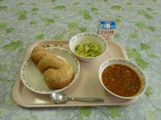 牛乳 揚げパン チリコンカン ドレッシングサラダ 大豆小魚