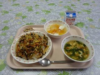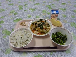 牛乳 わかめごはん 肉豆腐 ごまあえ りんご 大豆小魚