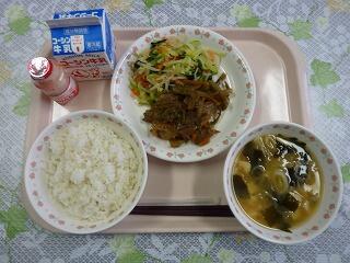 今日の献立は,ひじきごはんです。干しひじきは栄養価はカルシウムが牛乳の約12倍,食物繊維がごぼうの7倍,マグネシウムがアーモンドの2倍も含まれています。カルシウムは骨や歯の形成を即し,食物繊維は腸内環境を整えるのに役立ちます。