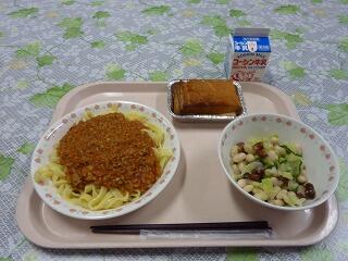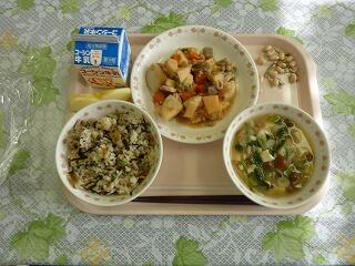 牛乳 ひじきごはん 筑前煮 なめこ汁 りんご 大豆小魚