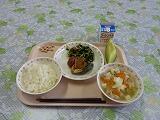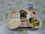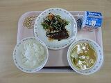 牛乳 ごはん 鯖の柚子味噌煮 のりあえ 塩豚汁 メロン 炒り大豆