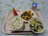 牛乳 枝豆とじゃこのごはん 肉じゃが かきたま汁 すいか 炒り大豆