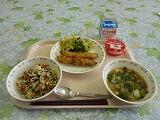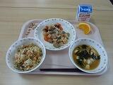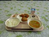 牛乳 中華丼 トックと野菜のスープ みかん 炒り大豆