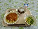 牛乳 スパゲティミートソース マセドアンサラダ アップルパイ