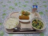 牛乳 ごはん 手作り春巻き ナムル 卵とわかめのスープ 大豆小魚