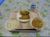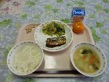 牛乳 ごはん 秋刀魚の筒煮 小松菜とたくあんのごまあえ じゃがいもの味噌汁 冷凍みかん 炒り大豆