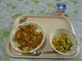 牛乳 チキンカレーライス コーンサラダ 小魚
