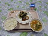 牛乳 ごはん 鯖の味噌煮 磯香あえ えのき茸の味噌汁 炒り大豆