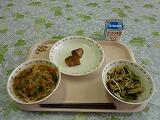 牛乳 ごま辛ラーメン きくらげの中華あえ 大学芋 大豆小魚