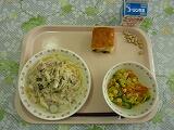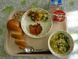 牛乳 ツイストパン タンドリーチキン マセドアンサラダ チーズスープ アセロラゼリー 大豆小魚