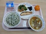 牛乳 七草ごはん 鮭の照焼き 黒豆の甘煮 おひたし けんちん汁 みかん
