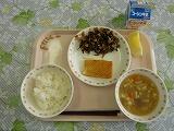 今日は,ひじきと野菜の金平です。ひじきは,カルシウムが牛乳の12倍,食物繊維はごぼうの7倍にもなります。皆さんの健康な血を作ってくれる働きがあります。