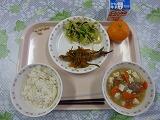 牛乳 ツナピラフ さつまいものサラダ ペイザンヌスープ 小魚