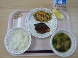 今日の献立は,切干し大根ごはんです。切干し大根の栄養は,カルシウムは生の大根の約23倍で,歯や骨を丈夫にしてくれたり,イライラを防止してくれたりします。カリウムは生の大根の14倍で尿を出しやすくしてくれたり,疲れをとってくれる働きがあります。皆さんの体によいことばかりです。