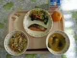 牛乳 ごはん 鯖のごま味噌焼き じゃがいものきんぴら きのこ汁 りんご 炒り大豆