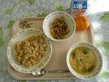 牛乳 ナシゴレン マセドアンサラダ かぶのスープ みかん 大豆小魚