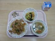 今日の献立は,ひじきごはんです。ひじきは海草の一種でカルシウムが豊富で,牛乳の12倍,約半分が食物繊維でごぼうの7倍含まれています。鉄分も含まれています。