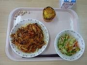 牛乳 きのこスパゲティ ハニーマスタードドレッシングサラダ 手作りかぼちゃケーキ