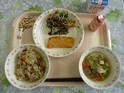 牛乳 まいたけごはん いかのみそ焼き のりあえ けんちん汁 八条乳 大豆小魚