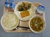 今日の献立は,小松菜と油揚げの煮びたしです。小松菜は,カルシウムの量が野菜のトップレベルになります。カルシウムは骨や歯に存在しており,不足すると骨密度が低くなるので,骨がもろくなります。イライラする気持ちも静めてくれます。喉の粘膜を強くしてくれるので,風邪のウィルスを体に入れない働きがあります。