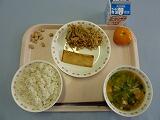 牛乳 ごはん 鰯の梅煮 磯香あえ さつま汁 梨 炒り大豆