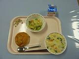 牛乳 ぶどうパン コーンシチュー ハニーマスタードドレッシングサラダ 大豆小魚