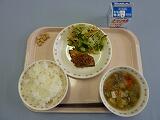 今日の献立は,けんちん汁です。ごぼうが入っています。ごぼうは,成分の8割が水分ですが,食物繊維が多く含まれているので,腸の働きをよくしてくれます。また利尿効果もあるので,体の余分な水分を尿に変えて体の外に出してくれます。体の毒素を出してくれる働きもあるので,血液や肌をきれいにしてくれます。