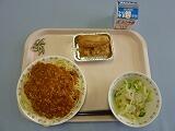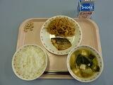 牛乳 ごはん 鯖のカレー焼き 切干し大根のうま煮 豆腐とわかめの味噌汁 炒り大豆