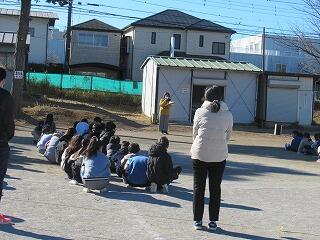 その後,教室では入口から距離を取った場所に児童が集まってしゃがみ静かに待機します。