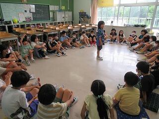 軽快な話し方・絶妙な間で子供たちを笑いの渦に巻き込んでいました。