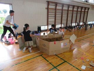 普段の教室の授業では味わえない,ダイナミックな造形活動を体験することができました。