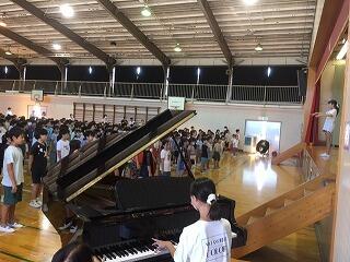 指揮とピアノ伴奏は音楽委員会の6年生児童です。