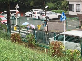 本日も雨の中,横断歩道に立って児童の誘導・見守りありがとうございます。