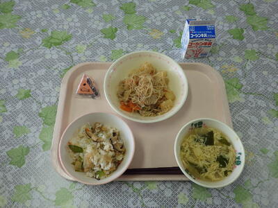 菊花ずし・肉じゃが・かき玉汁・黒豆・牛乳