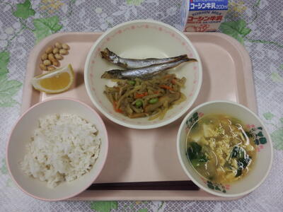 牛乳 ごはん ししゃも焼き カレーきんぴら たまごと豆腐のみそ汁