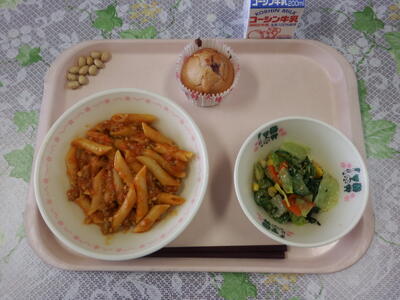 6年生のリクエストで、ケチャップたっぷりのミートソースがペンネに