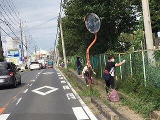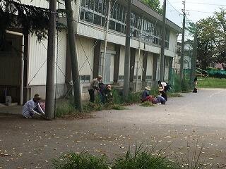 体育館前のネット脇の除草と校庭南側のフェンスの外側の縁の除草をしていただきました。