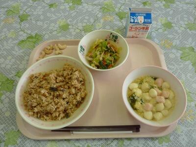 牛乳 うなぎごはん ごまあえ かきたま汁 カシューナッツ