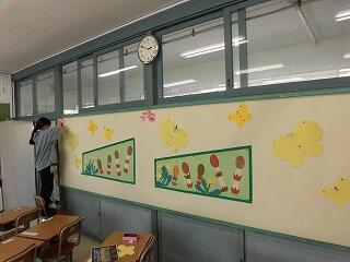 6年生が会場設営、掃除などさまざまな場所で1年生を迎える準備をしました。