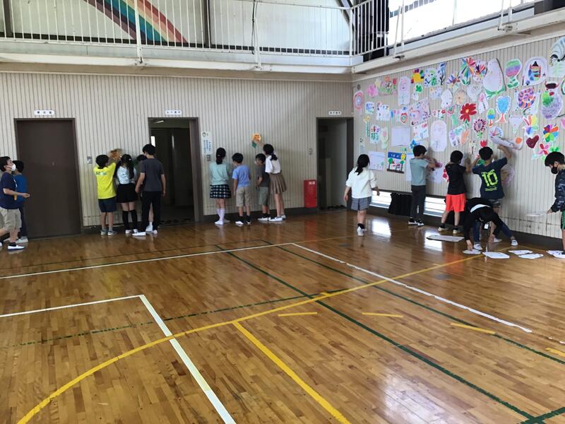 入学式の体育館の装飾を全員で力を合わせて外し,片付け作業をしました。