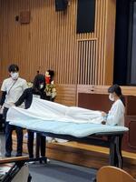 自然の家の方からお話しを聞いたり、リネンの使い方などの説明を受けたりしました。