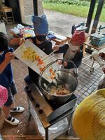 自然の家の方から説明を受けたあと、カレー作り開始。グループごとに協力しながらごはんとカレーを作りました。ごはんを上手に炊ける班が多かったです。