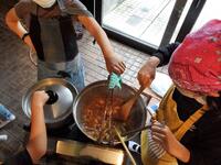 出来上がったカレーは外で食べました。外でみんなで食べるカレーはとても美味しかったです。