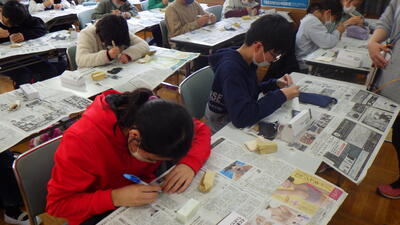 てん刻で作成したオリジナルはんこは,完成したら家庭に持ち帰ります。