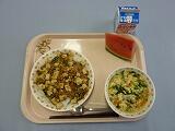 牛乳 麻婆豆腐丼 五目中華スープ すいか 大豆小魚