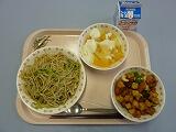 牛乳 ごはん 鯖のさっぱり煮 からしあえ みそけんちん汁 炒り大豆