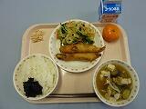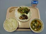 今日の献立は,鯖のさっぱり煮です。鯖を酢,しょうが,ねぎ,しょうゆ,梅干し,酒で煮ています。鯖は青魚の王様と言われています。人間の体で作ることの出来ない,体によい7脂肪が多く含まれています。骨や歯を強くしてくれたり,肌を健康にしてくれる働きなどあります。