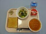 今日の献立は,ポークビーンズです。白いんげん豆と豚肉のトマト煮こみのことで,アメリカの代表的な家庭料理の一つです。豚肉の代わりにベーコンを使うことも多いです。給食では,豚肉を使っています。