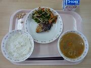今日の献立は,鯖のオレンジ煮です。オレンジジュース,しょうが,ねぎ,しょうゆ,みりんで味をつけていますので,オレンジのほのかな香りが感じられると思います。鯖は脂が多く,たんぱく質を補い,体力をつける働きがあります。鉄分も多いので,貧血予防にもなります。